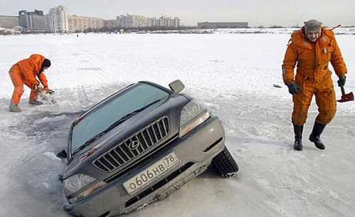 hahaha das abgesoffene auto is in russland