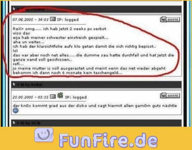 "Er zeigt sein erregtes Glied im Unterricht und klatscht es an Cornelia ab." xD Ging der Zettel an deine Eltern? ![]()