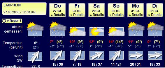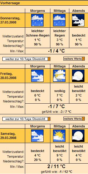Die Wetterprognosen wechseln doch andauernd, und wens übermorgen ein bisschen nass ist ist doch wirklich ned schlimm, immerhin ist es auch erst März ;)