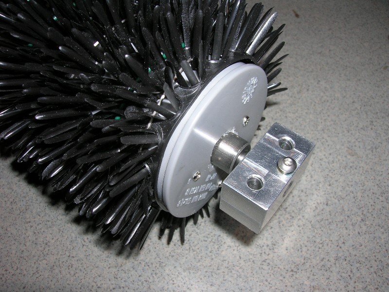 Hab über das ganze Wochenende hinweg versucht die Bürste vorne an den Crawler ranzubasteln.Nach etlichen Fehlversuchen hab ich es dann endlich geschafft das Teil einigermaßen ordentlich dranzubringen.Tja,nur dumm das ich nich so richtig mitgedacht hab.Vor der Lenkachse eine Weitere Achse anzubringen die Bodenkontakt hat und nicht mitlenkt hat zur Folge das man nicht mehr lenken kann.Daran hab ich leider erst gedacht als ich schon fertig war.Ein kleiner Test bestätigte mir das ganze.Also alles wieder abgeschraubt und mal bei 1:1er Kehrmascheinen u.ä. nachgeschaut wie das so funktioniert.Bei 1:1ern wird mit der Hinterachse gelenkt.Also werde ich meine Bürste an der Hinterachse montieren und dann rückwärts fahren.Damit ich nicht so durcheinender komme programmier ich meine Funke so, dass das ganz funktioniert ohne das ich andersrum lenken muss o.ä.Das ganze versuch ich mit nem Schalter ein- und auszuschalten damit ich auch normal fahren kann.