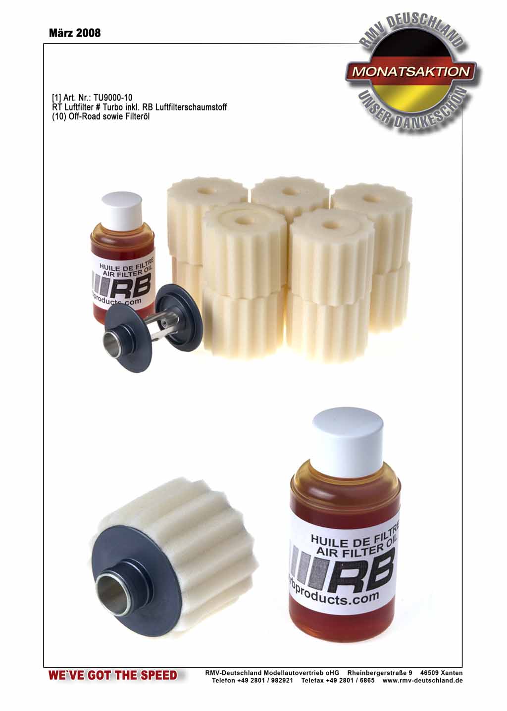 1 Jahr Monatsaktion unser Dankeschön bei RMV Deutschland - wir feiern Geburtstag! Feiern Sie mit und freuen Sie sich auf ein sensationelles Angebot und sparen dabei noch clever: denn bei uns finden Sie diesmal zwei Artikel zu einem Sonderpreis. Dieses gilt bis einschließlich 31.03.2008 oder solange der Vorrat reicht. Schauen Sie sich dieses Angebot auch live an: Auf der zweiten Seite oder bei Ihrem Fachhändler!