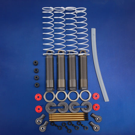 Shock set includes ultra smooth Ti-Nitride shock shafts, white shock springs, shock limiters and assembly hardware