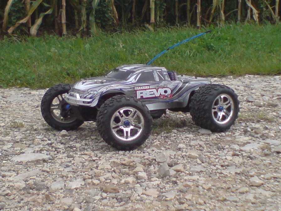 so wie der Titel es schon besagt ist am Freitag den 12. September 2008 mein neuer Traxxas Revo 3.3 eingetroffen da ich aber nicht daheim war hab ich ihn erst heute zu Gesicht bekommen und war sofort hell auf begeistert also so richtig