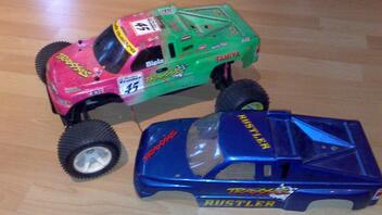 Hab ein Rustler gesteigert ist das alte modell ,es fehlt der regler sonst soll er komplett sein ,müste morgen kommen wenn ich Glück habe.