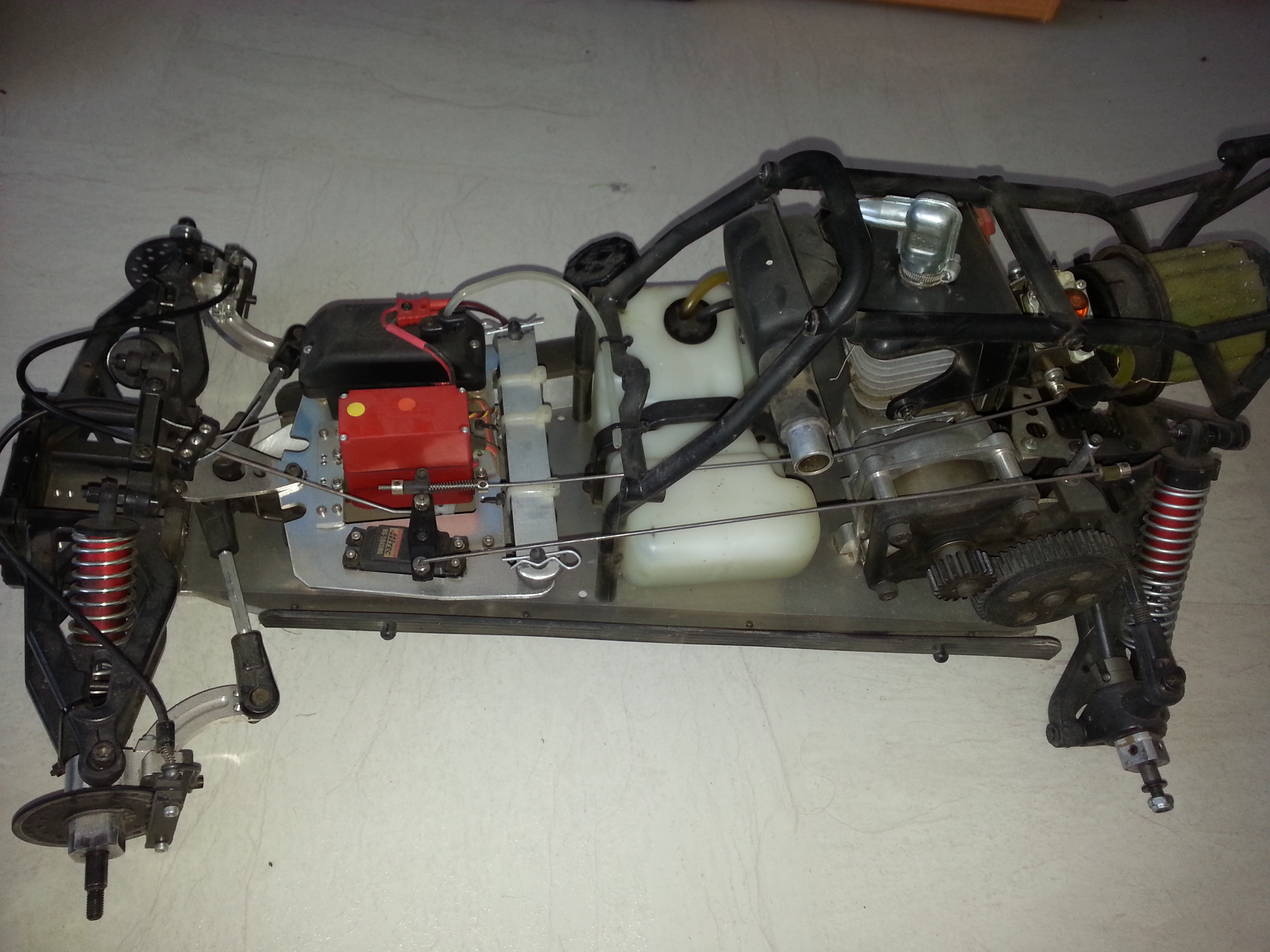 Erstes und einziges Upgrade das kam, waren die Bremsen plus Scheiben vorne, auchewig mit dem Seilzug gemacht, Bremsleistung war ok, aber ich hätte ein zweites Servo gebraucht und nicht alles über eins steuern, weil entweder bremste er vorne zu Stark, oder zu schwach.