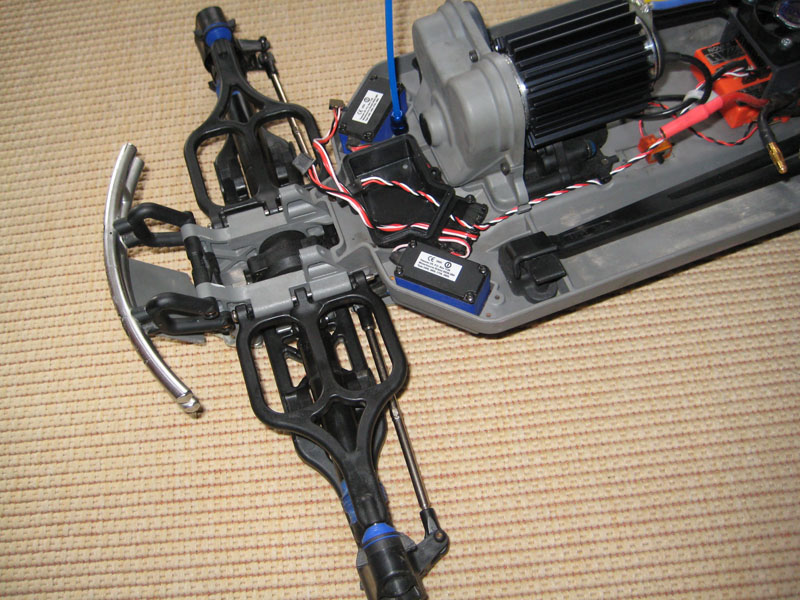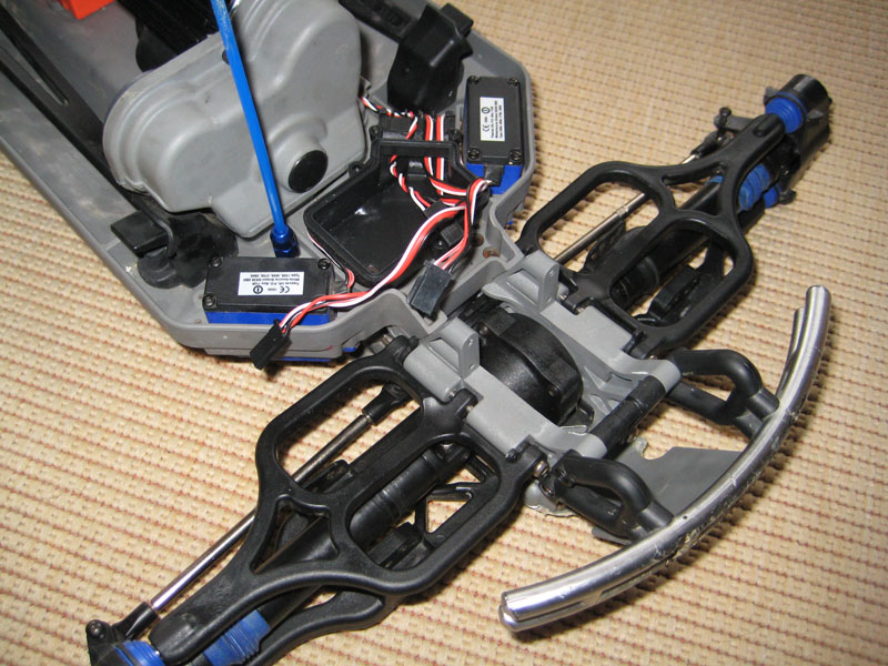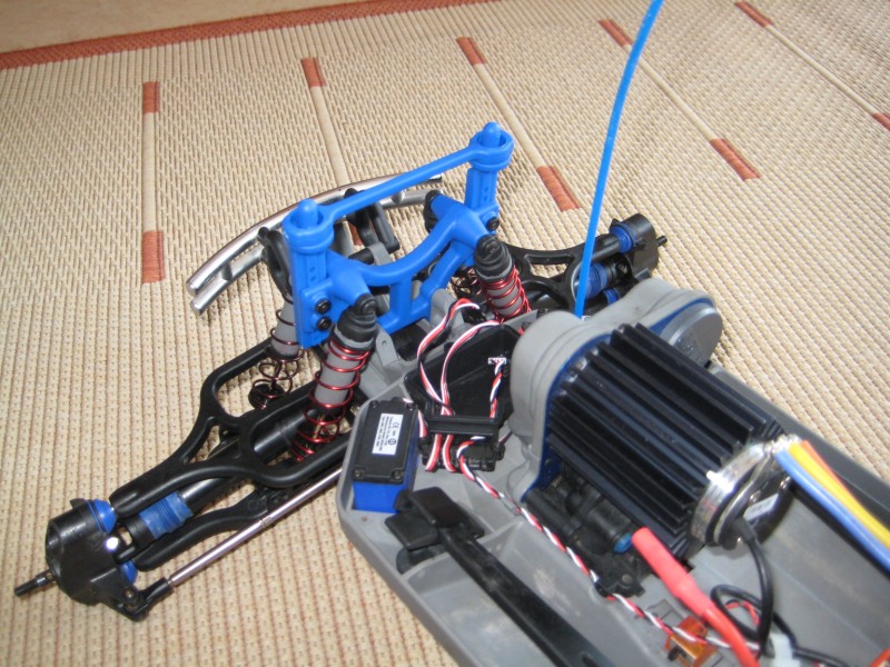 • So habe gestern und heute mal meinen Maxx komplett zerlegt um ihn mal zu reinigen habe auch paar Bilder gemacht dort ist er aber schon wieder bis auf die Dämpferbrücken und die Dämpfer wieder zusammengebaut. Ach ja und ich habe ihn schonmal auf den 2.4ghz Umbau vorbereitet.