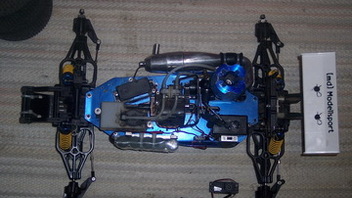 Mit dabei ist ein Großmodellservo (Hitec HS 5745 BB MG DIGI) ein Normales Gas/Brems Servo und ein 3700er 6 V Akku( es Fehlt also nur noch eine Funke und los gehts).