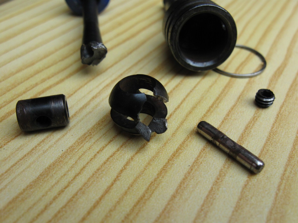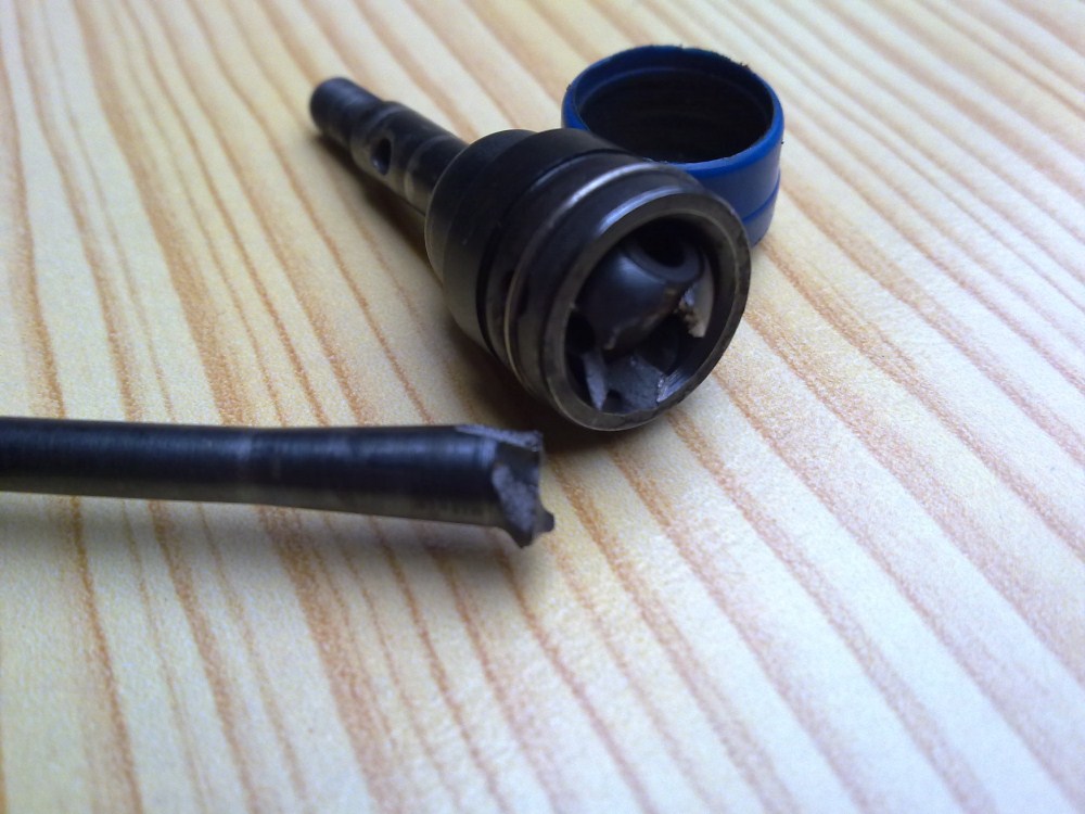 Unglaublich, die vordere linke T-Bonz Stahlwelle ist unten am Mitnehmer zum Rad gebrochen!