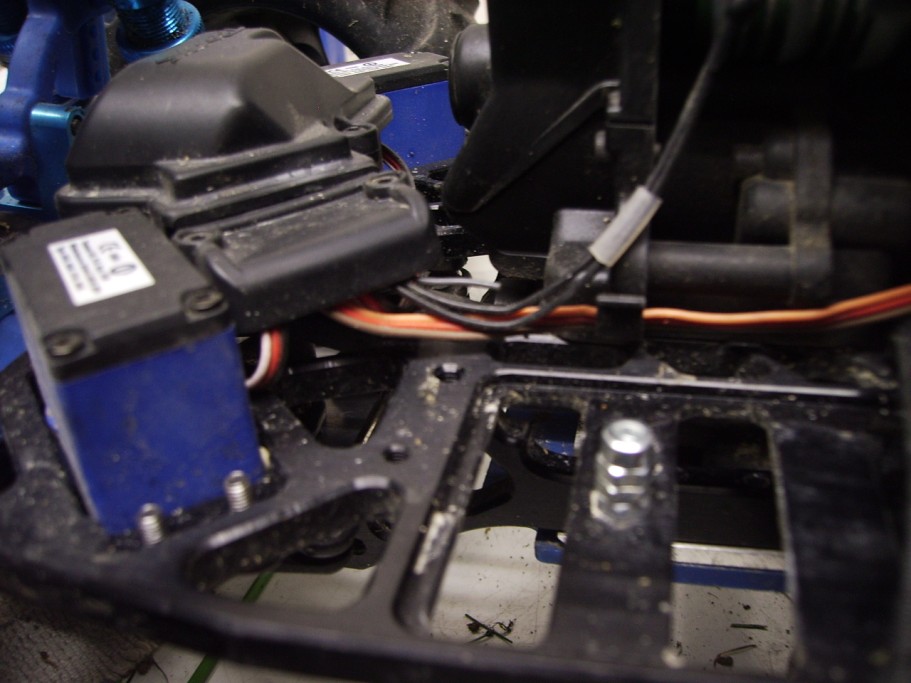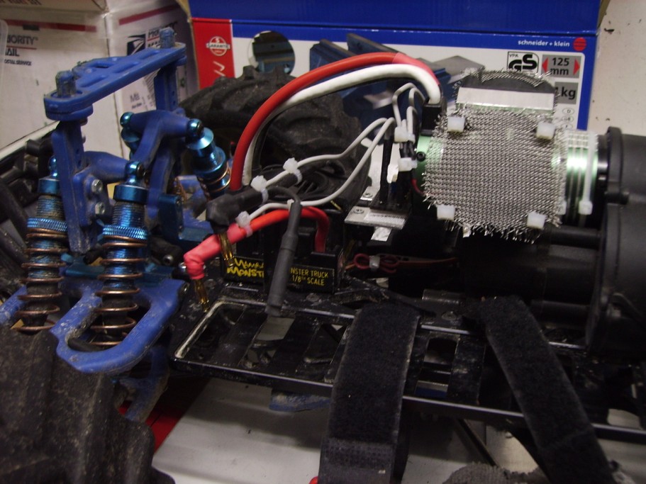 Alles ist auf 3 kleine, schwarz lackierte Platinenstücke gelötet. Diese hab ich mit Klett auf den beiden Servos und das Dritte auf dem Chssis hinter dem Regler befestigt. Da sollten die Dinger auch gut geschützt sein vor Crashs, Steinschlägen und Feuchtigkeit.