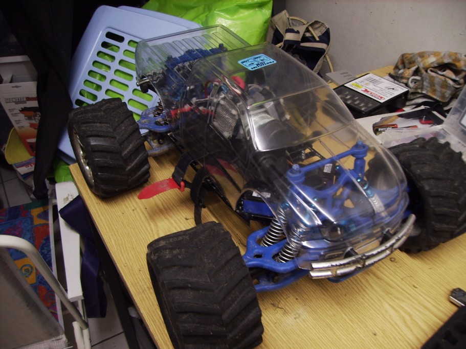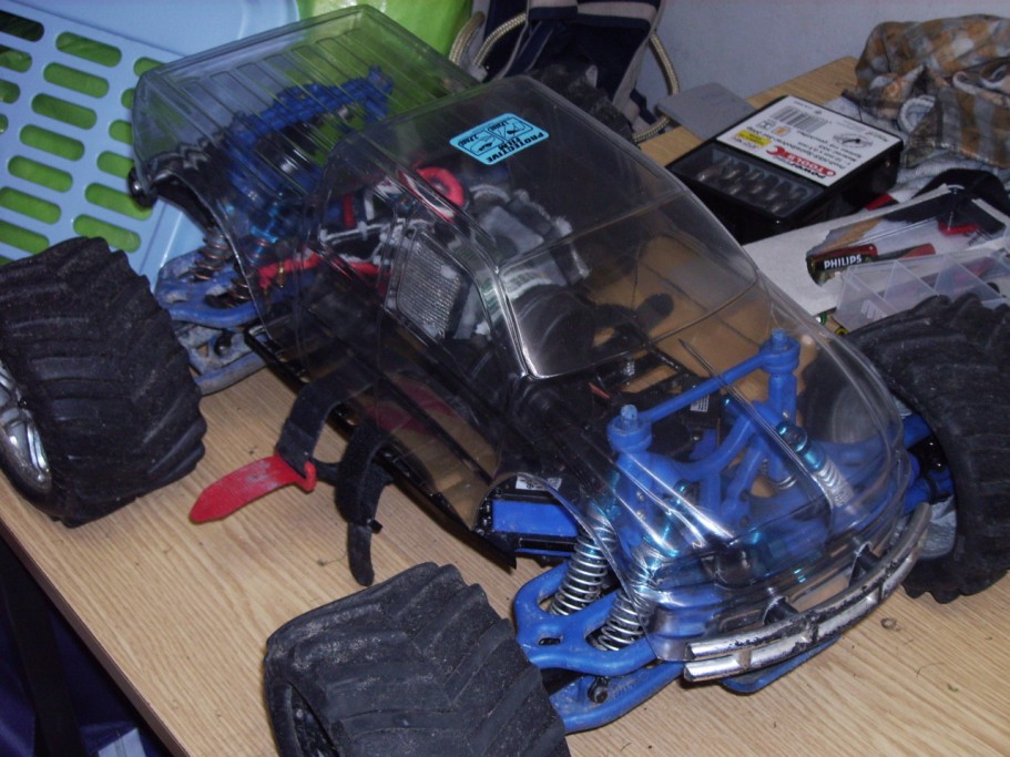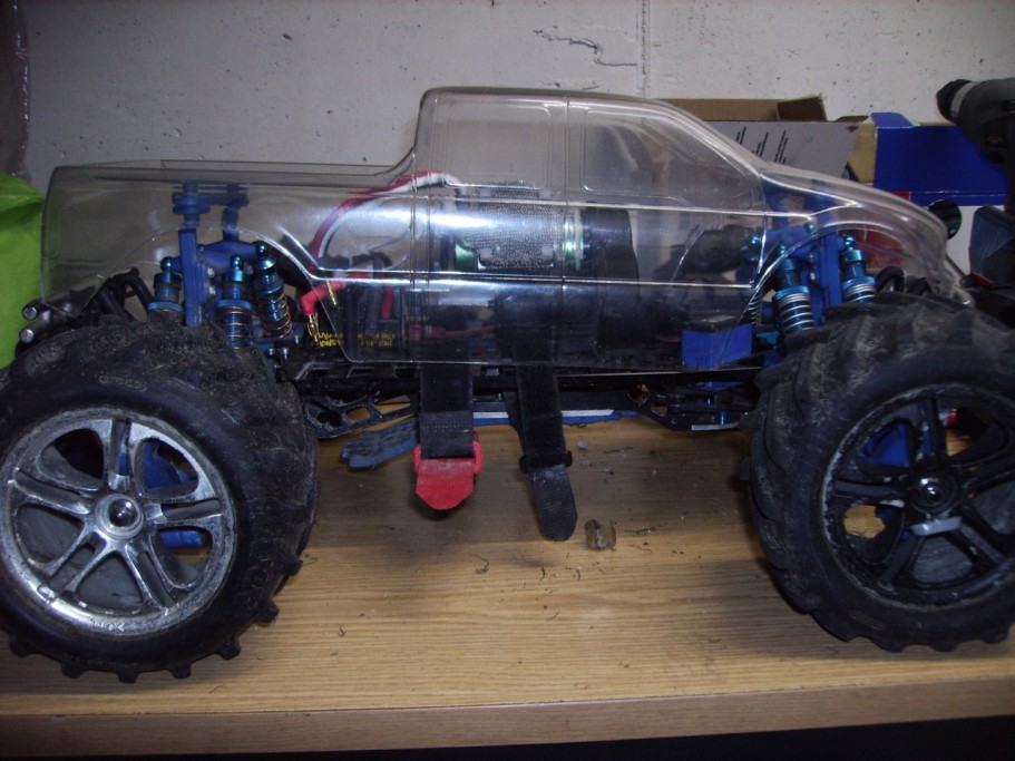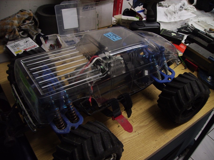Ui, das ist mal eine schicke Idee, mit der Karo. Wobei mir auf dem E-Maxx die originale Karo in schwarz (natürlich original Tribalkrimskrams :)) am besten gefällt.