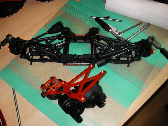 Insgesamt sehr leicht und kompackt. Vieles ist durch Splinten gehalten, was nach dem heutigen Tag meine Finger nicht mehr lustig finden. Ist aber eine tolle Lösung. Ausserdem wird vieles gegeneinander verstrebt und so die Festigkeit erhöht (so hoffe ich doch). Allerdings ist der Aufwand hier an ein Diff zu kommen nicht geringer als in einem 4WD FG der als sehr warungsunfreundlich gilt.