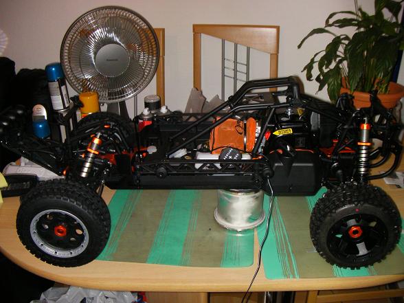 der Wagen sieht absolut brutal groß aus aber ist im Endeffekt eine Truck Karosse aufm Baja 5B Chassie :D