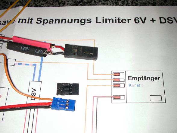 Beim F/S habe ich erst mal die Stromversorgung und den Steuerimpuls auf einen Stecker gebaut. So wird bei mir der Motor über Kanal 4 gekillt.