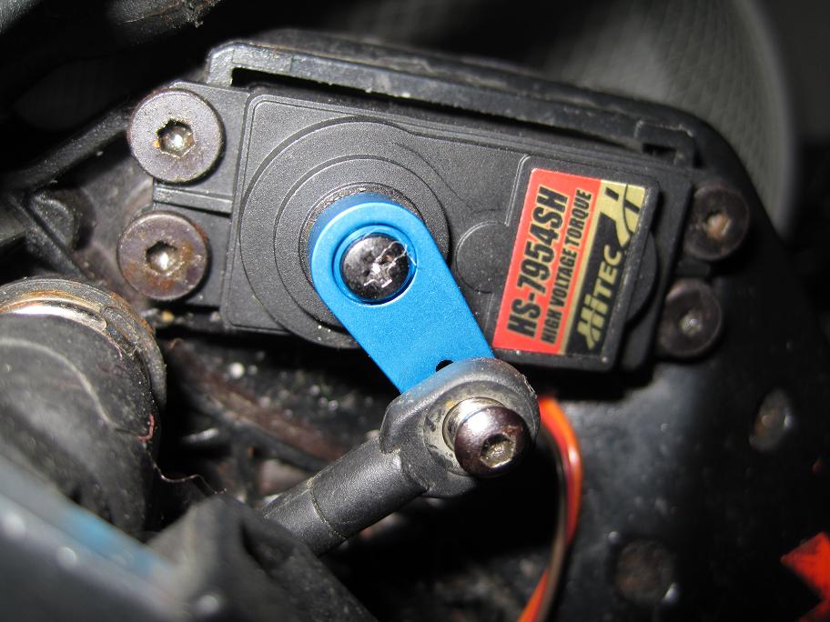 Mit welcher Schraube hast du das Lenkgestänge (Kugelkopf) an das Servohorn befestigt?? Hast du das Servohorn aufgebohrt??