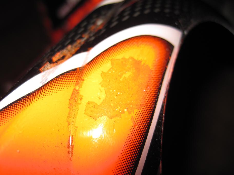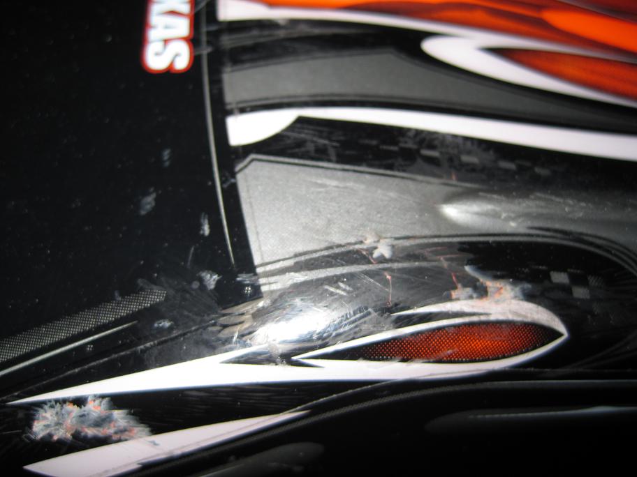Genau so sieht meine selbst lackierte Karosse jetzt auch aus, die Farbe bröckelt einfach ab sobald die Karosse etwas verformt wird.