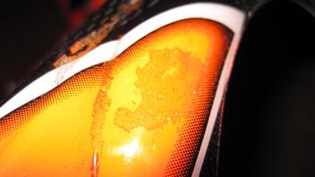 Die Stellen an der die Farbe abbröckelt haben teilweiße einem Durchmesser von bis zu 2 cm. An diesen Stellen ist die Karo dann durchsichtig.