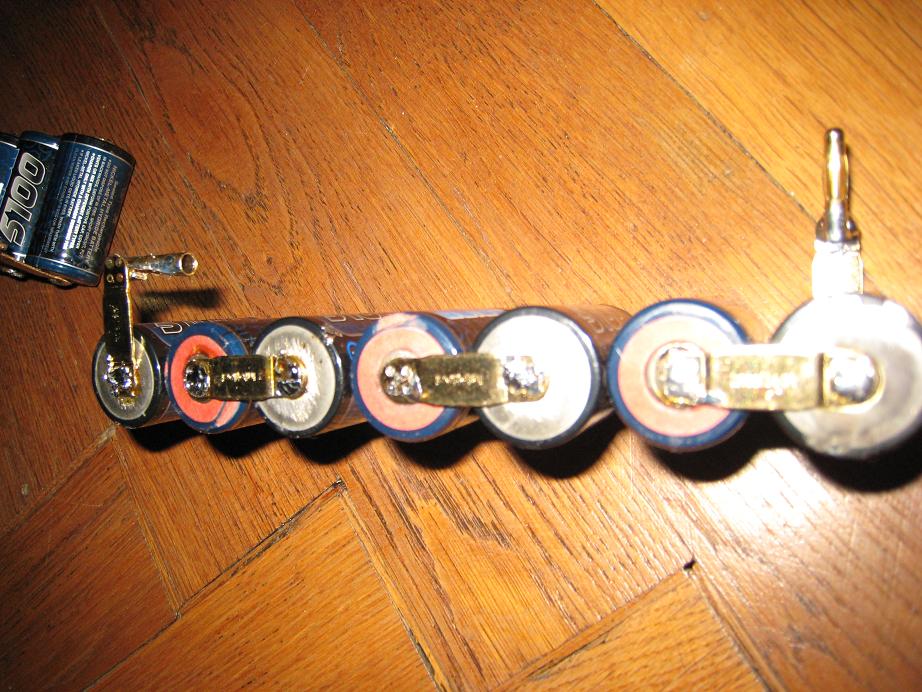 Hier mal noch Bilder davon:Fazit: Nimh Akkus löten ist sehr aufwändig, aber es lohnt sich. Der Innenwiderstand ist bei guten Kontakten niedriger als zuvor und man kann einzelne kaputte Zellen mit wenigen Handgriffen ersetzen.