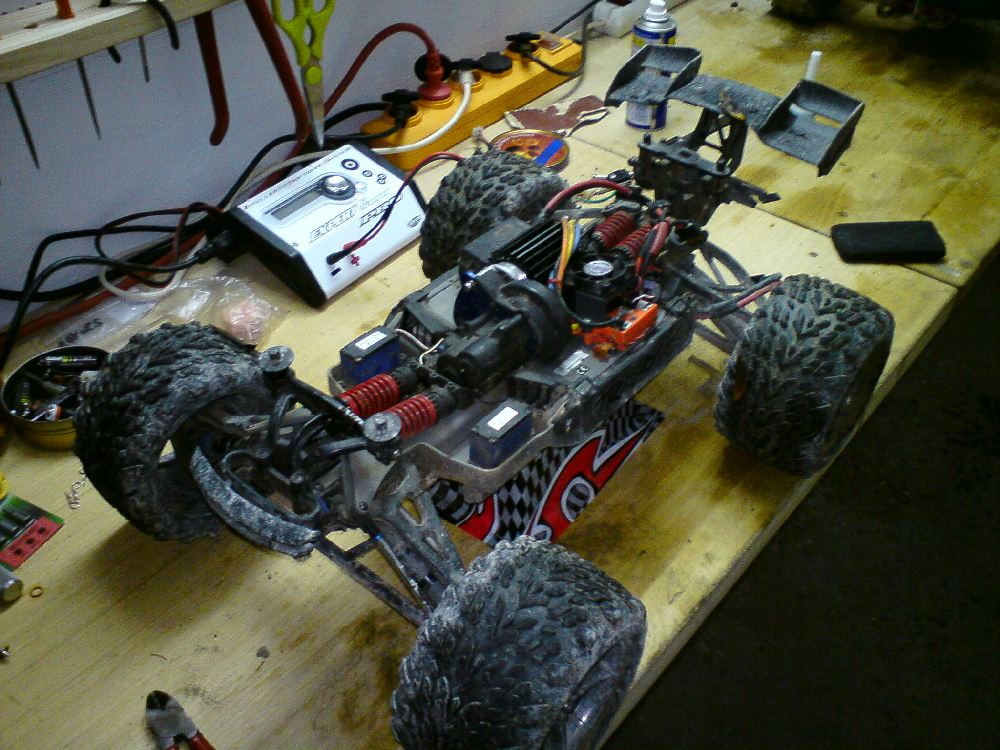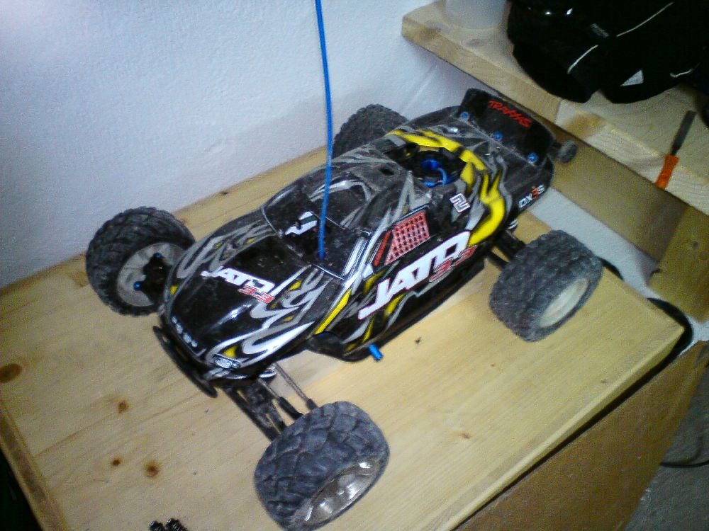 so jetzt is glaube ich ein bild im anhang, alsonochmals mein Rustler vxl wiegt ohne Akku 1.555 kg odr so: