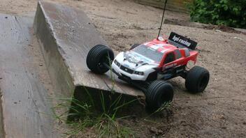 So zu meinem Servo : Also ich fuhr mit voll speed über eine Rampe und der wagen ist falsch auf gekommen Fazit Gewindestange wie man gleich sehn wird gebrochen : Pic