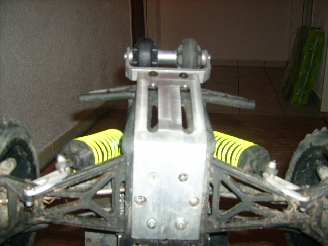 alle die einen Savage fahren, wissen das er gerne mal auf die Hinterräder steigt. Dafür gibt es natürlich eine Wheelie-Bar. Die Originale von HPI ist natürlich nicht der Hit, daher hab ich mir selber eine gebastelt. Diese Wheelie-Bar ist genial. Der Savage lässt sich gute 100 m auf der Hinterachse fahren. Man muss natürlich auch gut motorisiert sein.