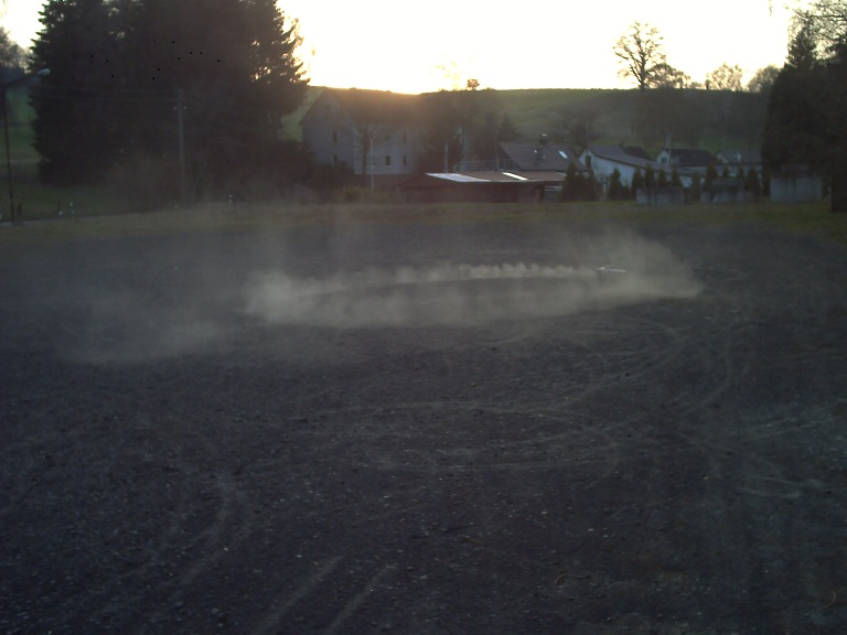 Wenn es mal warm ist versuche ich nochmal Gummi auf die Straße zubringen. Der Abrieb vom letzten mal ist leider weggeregnet