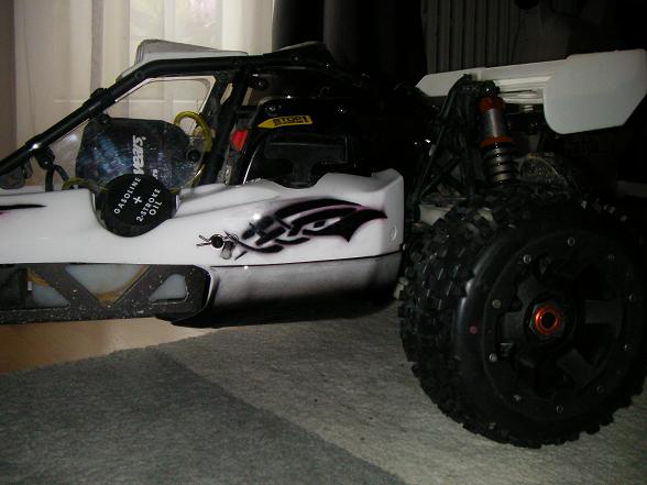 Dazu noch der Heckdom, der hinten nach unten zieht (und anschiebt) Die Strassenreifen hatten super Grip, bei dem Wetter und quitschten teilweise beim bremsen. (Die 5T Räder machen absolut die :goil: sten Töne) Dazu habe ich, wie oben geschrieben, hinten die Federvorspannung voll nach unten gedreht. So kann er leichter nach hinten "kippen" Probiers mal aus... die Karre hinten so hoch wie möglich.. (jetzt stehen sie bei mir in der Mitte und er bleibt unten)