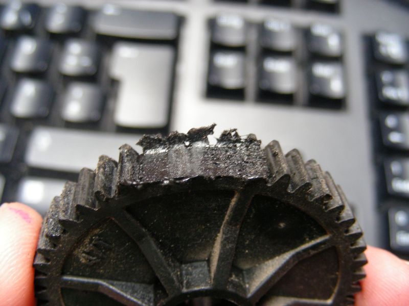 Das was ich jetzt denke ist das,dass Zahrad sehr heis wurde wegen der Reibung und das Geschmolzen ist. Ist mir auch schon passiert.