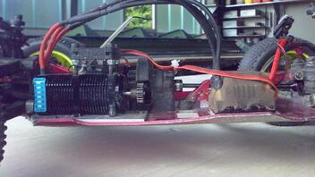 • Die platte ist mit dem Chassi fest verschraubt. in der chassiplatte sind lanlöcher wo der schrauben kopf durchpasst. in der alluplatte sind auch langlöcher wo nur das gewinde der befestigung für den Motor durchpasst. und schon hat mann eine komfortable vorrichtung zum ritzelspiel einstellen und die schraubenköpfe der Zylinderschrauben sind versenkt. ich werd da mal noch eine Bild davon machen, dann ist es einfacher zu verstehen.