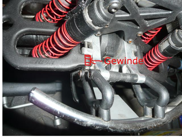 Mess doch mal den Lochabstand von den Originalen Bulkheads und von den Alu-Teilen, sieht schon sehr eigenartig aus. Hast du vielleicht vorne und hinten vertauscht?
