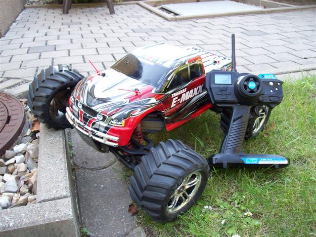Wie schon die Überschrift verrät ich fahre einen E-Maxx. Er fand letztes Weinachten zu mir. Ich habe schon viele Eastzteile kaufen müssen, dabei war hauptsächlich Originales. Gegen die Original Teile habe ich lediglich die Schwingen vorne (RPM) und ebenfals vorne die Bulks gegen alus (FLM) getauscht. Außerdem darf ich eine LRP c3 stx pro mein eigen nennen. Im Moment kann ich leider nicht fahren, weil meine Motoren kaputt sind. Das wird sich aber nächste Woche ändern. Bilder werden folgen.