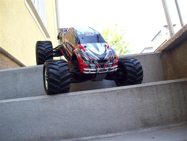 Wie schon die Überschrift verrät ich fahre einen E-Maxx. Er fand letztes Weinachten zu mir. Ich habe schon viele Eastzteile kaufen müssen, dabei war hauptsächlich Originales. Gegen die Original Teile habe ich lediglich die Schwingen vorne (RPM) und ebenfals vorne die Bulks gegen alus (FLM) getauscht. Außerdem darf ich eine LRP c3 stx pro mein eigen nennen. Im Moment kann ich leider nicht fahren, weil meine Motoren kaputt sind. Das wird sich aber nächste Woche ändern. Bilder werden folgen.