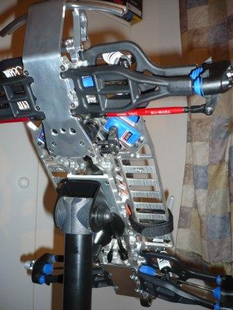 Fesler ==> ja ich wollte die ausgebauten Teile gleichzeitig als Ersatzteile für meinen 2. E-Maxx verwenden. Der Ständer ist eigentlich nicht nur für dieses Mäxxchen gebaut. Den besitze ich schon länger und wurde von mir als Montageständer entwickelt. Er passt an alle Fahrzeuge die ich besitze bzw. besaß.