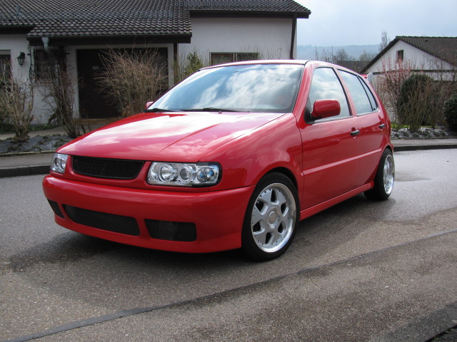 1.8T 20V motor ursprünglich verbaut in einem Audi TT ; Bremsanlage hinten vom Polo 6n GTI vorne Rally-Golf 2 G60 ; BN-pipes Edelstahl anlage ab kat ; 100Zellen sportkat ; chip auf 200PS ; Edles König sportgestühl in der vorderen reihe, rücksitzbank original aber ebenfalls von könig gesattelt ; Hifi mit dvd player, leistung mehr als ausreichend ; mittelkonsole eigenbau selbst laminiert, genau so wie die einfassung der uhren über dem lichtschalter, die vordere stoßstange ist übrigens auch eine eigenentwicklung und gibts so nicht zu kaufen. früher war die karre mal richtig schön tief mit 14Zöllern aber jetzt geht das leider nicht mehr da die bremsanlage auf der vorderachse mindestens 15zoll erfordert. das ganze ist allerdings nur was fürs wochenende und für schönes wetter, sonst fahr ich meinen 12 jahre alten audi a3 quattro mit dem gleichen motor nur eben ohne chip und dann kommen gerade mal 180 pferde raus. dafür hab ich im audi nen Lpg umbau und kann günstiges gas tanken
