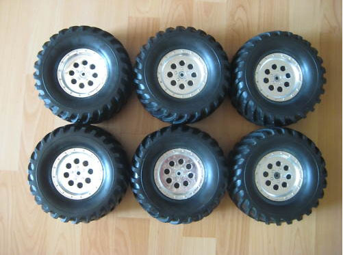 Da ich sie auf meinem E-Maxx fahren wollte, aber sie für meine 1:10er Scale Karosse einen Tick zu groß sind, verkaufe ich sie wieder und suche deshalb andere. Auch Tausch gegen welche mit 160 mm x 110 mm Reifen wäre möglich.