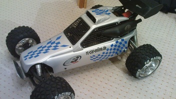 Zur Reifenauswahl stehen mir dann Fg Stollenreifen, Fg Stadiumreifen ,Carson Gas Devil Reifen, F1 Slicks und Lauterbacher Slicks. Je nachdem wo es gerade hin gehen soll.