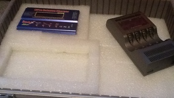 Da ich ja noch nen Koffer über hatte und die ladegeräte nicht sinnlos immer irgendwo rum kullern sollen hab ich sie angefangen zu verpacken ![]()