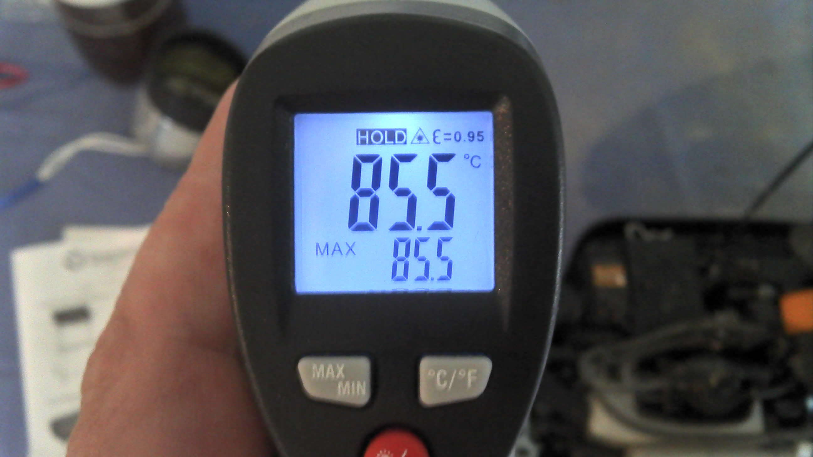 Reicht aus, um den Motor in zehn Minuten auf 70 Grad zu bekommen (am Gehäuse unten!)