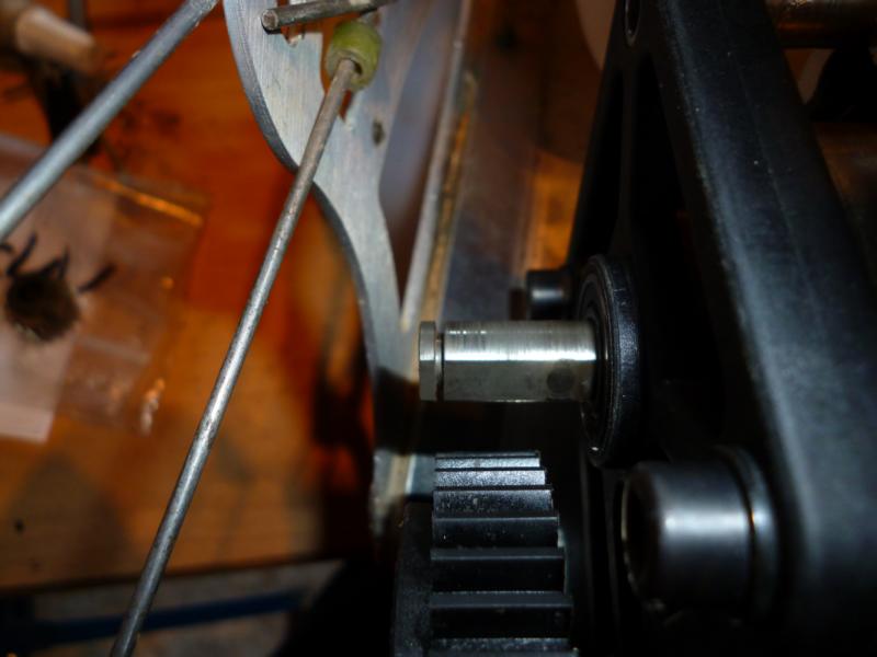 Machte mir erst mal keine Gedanken und das nächste Zahnrad drauf.Dabei fiel mir auf das das Ritzel und das Zahnrad keine schöne Flucht zueinender hatten.Das Zahnrad sah aus als würde es leicht nach vorne rechts laufen,was ja auch die Beschädigung der äußeren Zähne des Zahnrades erklären würde.