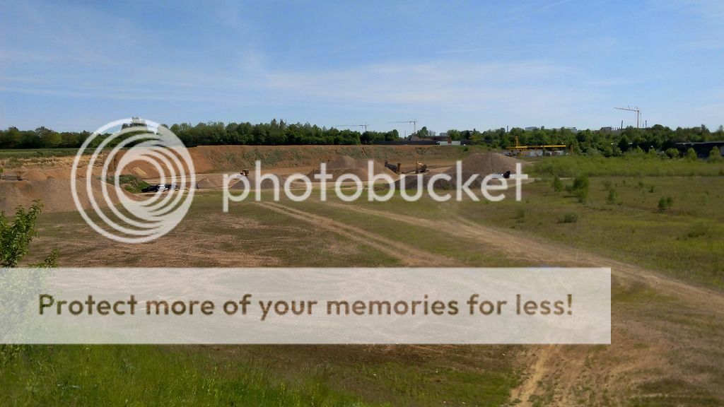 Der eetwas grünere Hang hinten rechts bei der Tanke und die FLäche dadrunter war unsere "Rennstrecke". Alle davor ist leider extrem steinig und wär enorm aufs Material gegangen. Früher war Laupheim auch noch sandig, jetzt leider nicht mehr.