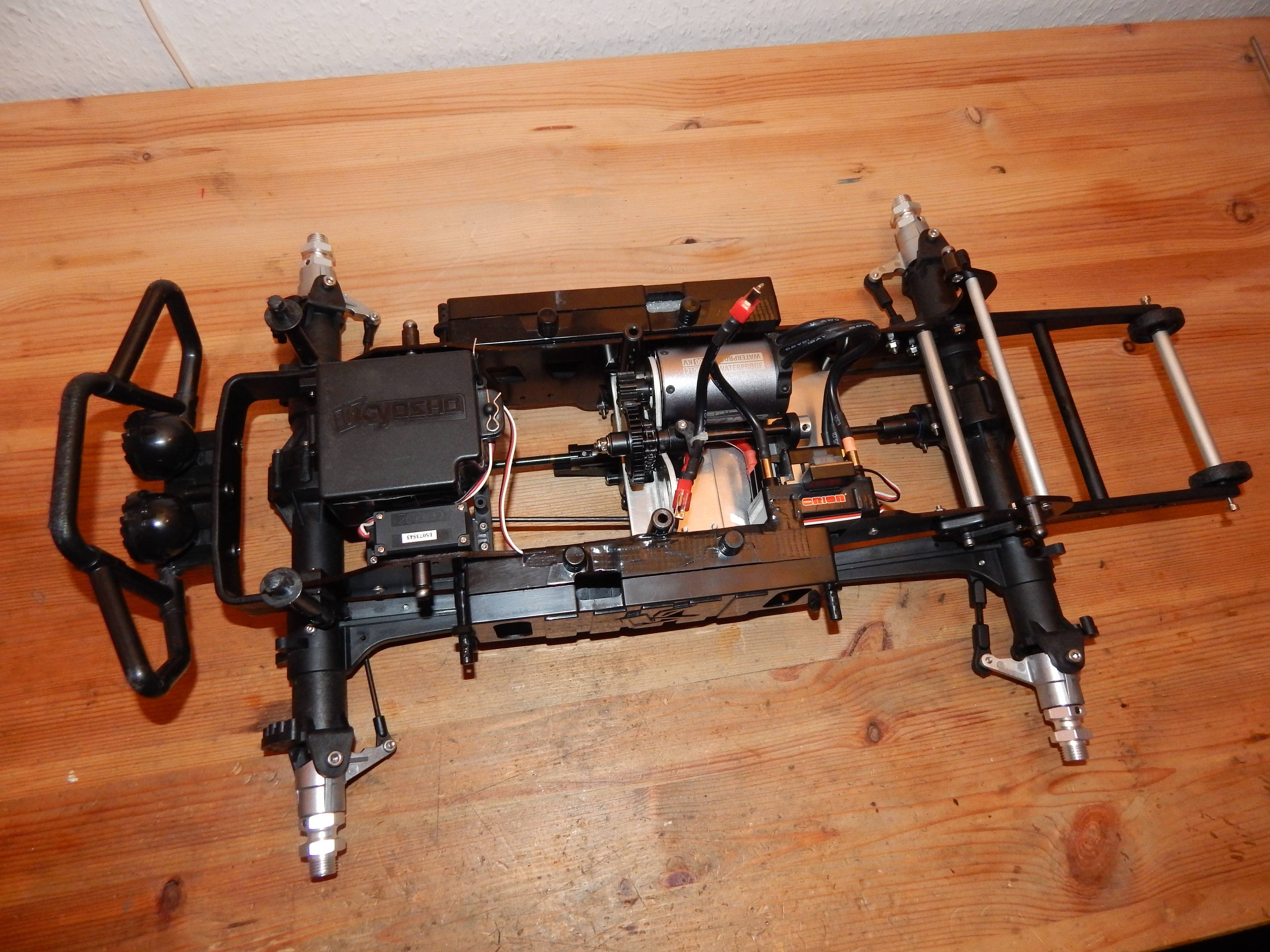 Nachdem ich die Achsen angeschraubt habe, sah der Wagen schon fast fertig aus. Es fehlen halt noch die Dämpfer.