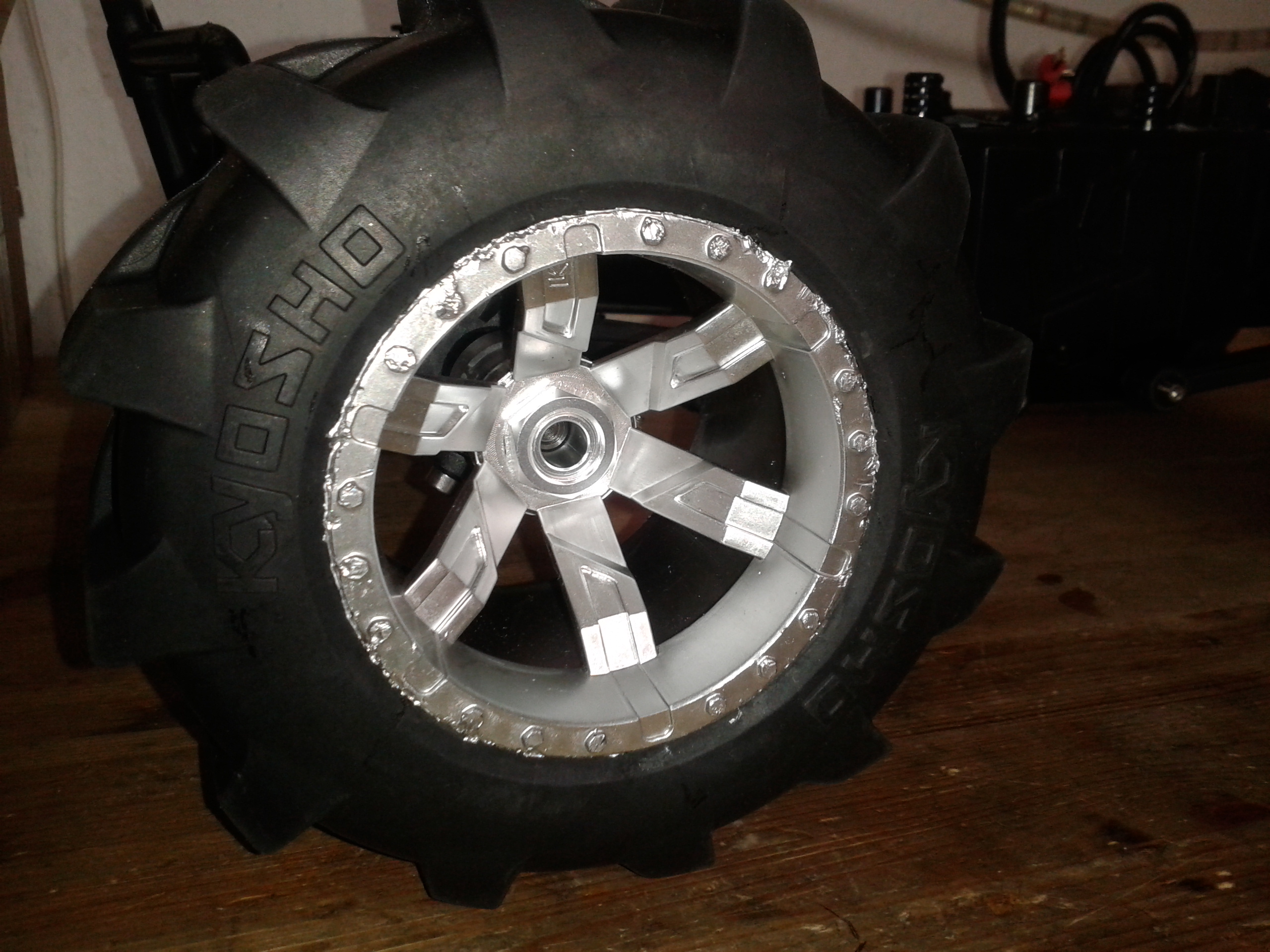 Jetzt können die Räder wieder ran! Der Foxx wurde also um ein bisschen Panzertape und etwas Blingbling erschwert.