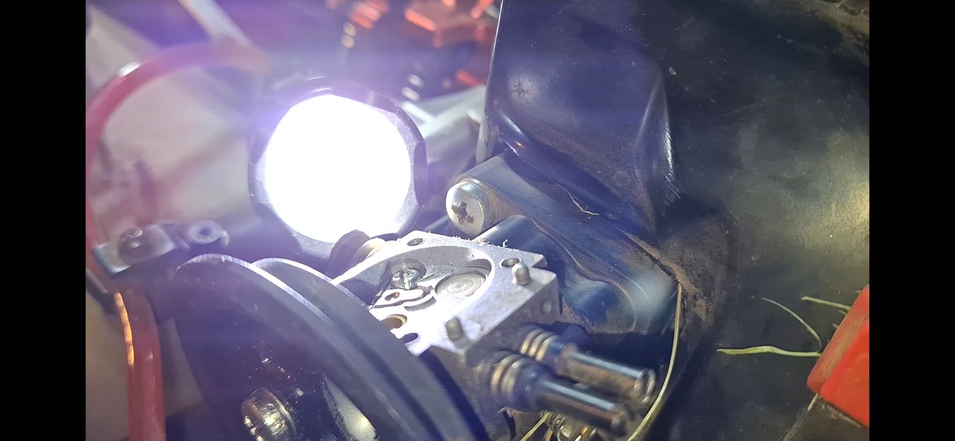 Muss dazu erwähnen, das ich es zuerst an einem anderen Vergaser getestet habe, sieht man ganz gut am 90grad Winkelstück aus Metall. Ist aber egal, den die Position war fast gleich.