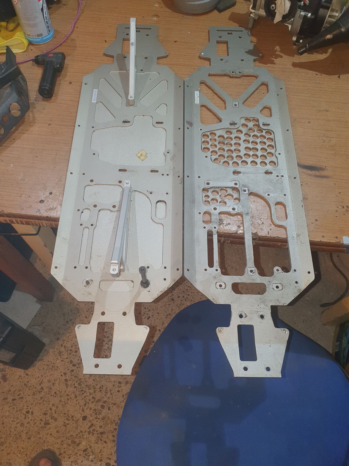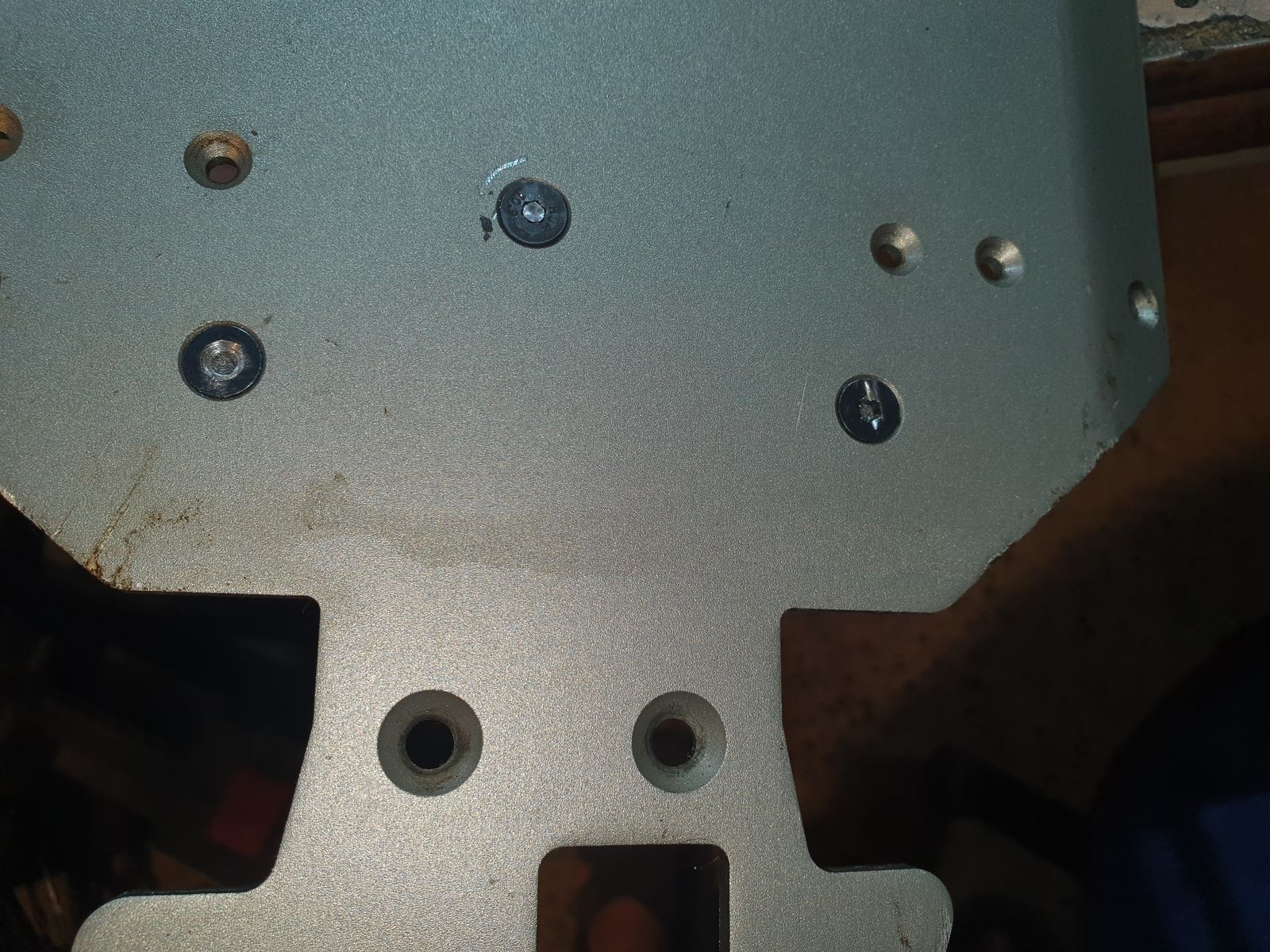 Nach erhalt der Platte musste ich erst mal die Chassisstreben entfernen, naja so einfach war das nicht, Inbuss rundgedreht, also musste ich einen Schlitz reindremeln, damit ich es mit einem Schlitzschraubendreher entfernen konnte.