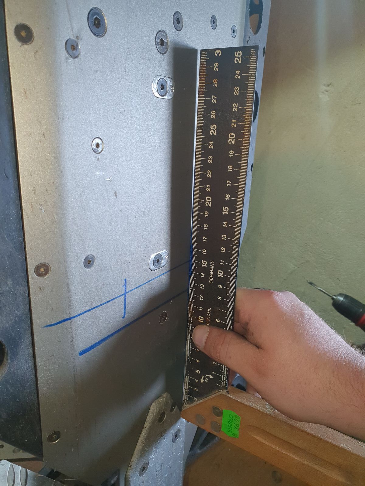 Zum ausrichten der Platte habe ich dann eine Holzlatte genommen, einen Fäustel und eine Metallplatte, in der Hoffnung das meine Aluplatte keine Schäden abbekommt.