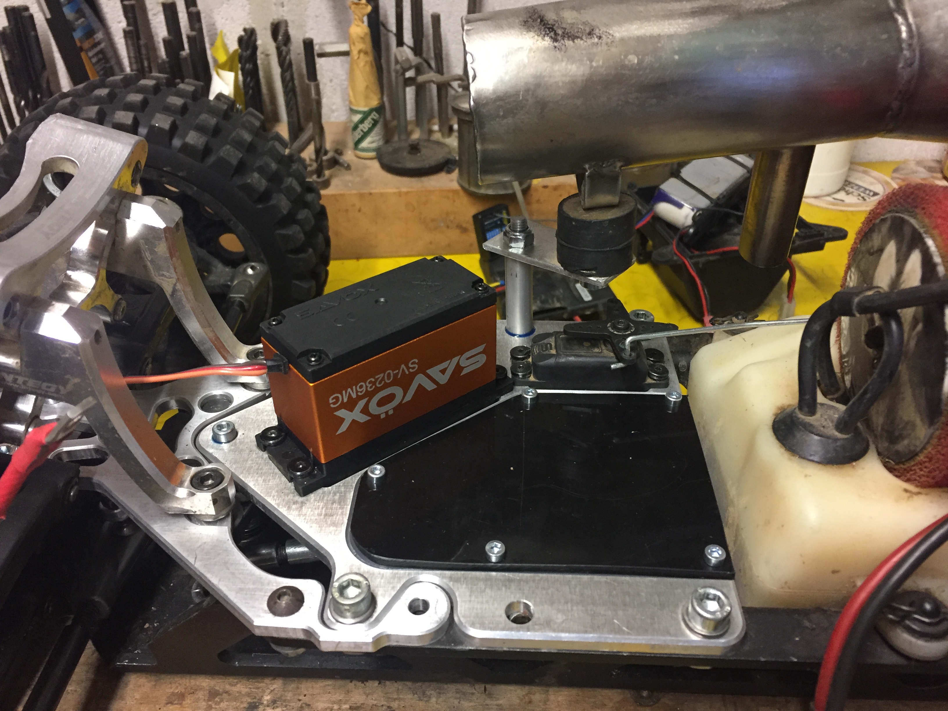 Den Motor/Trannyhalter hab ich auch mit 2k KLeber und ner Schraube repariert, sobald ich aber an einen aus Alu komme, wird der ersetzt: