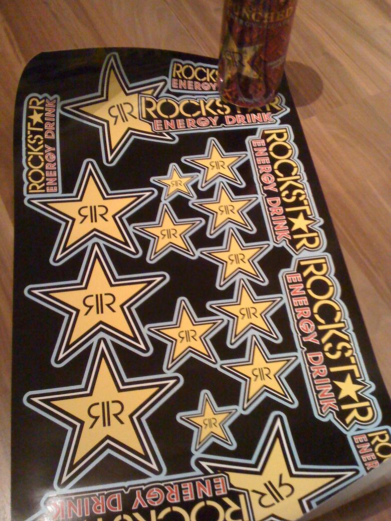 Außerdem spring ich auf den Trend der Energy Drinks auf und es kommen Rockstar Aufkleber drauf.