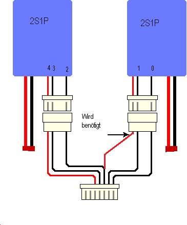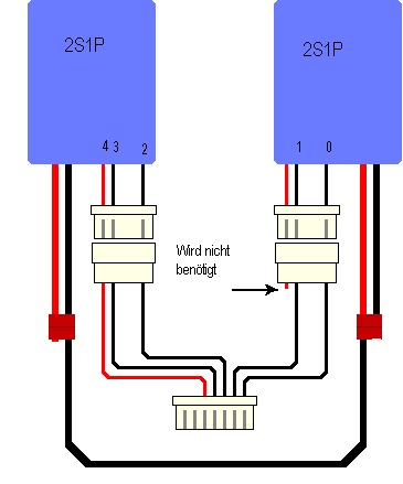aber dann müssten es die gleichen Akkus sein und dann auf 4S einstellen."Auf meine Frage, wie ich das denn nun verkabeln soll, kam bis heute keine antwort....