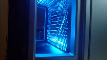 im endeffekt ist es genau das gleiche wie vom conrad - nur, dass eine slotblende und eine zweite kk dabei sind. das gehäuse der kk von revoltec ist im gegensatz zu dem vom conrad nicht klar, sondern auch blau eingefärbt, was dem ganzen eine sattere farbe verleiht. hier noch 3 bilder...(heute abend kommt vll noch eins im dunkeln)EDIT2: habe jetzt eine kk hinten an dem lüftungsgitter des gehäuses angebracht - vorne wird jetzt also der luftkanal nur noch von oben beleuchtet (was aber eigentlich keinen unterschied macht). die beleuchtung des luftkanals hat sogar einen schönen nebeneffekt: die frontanschlüsse werden jetzt von hinten beleuchtet (siehe letztes bild).