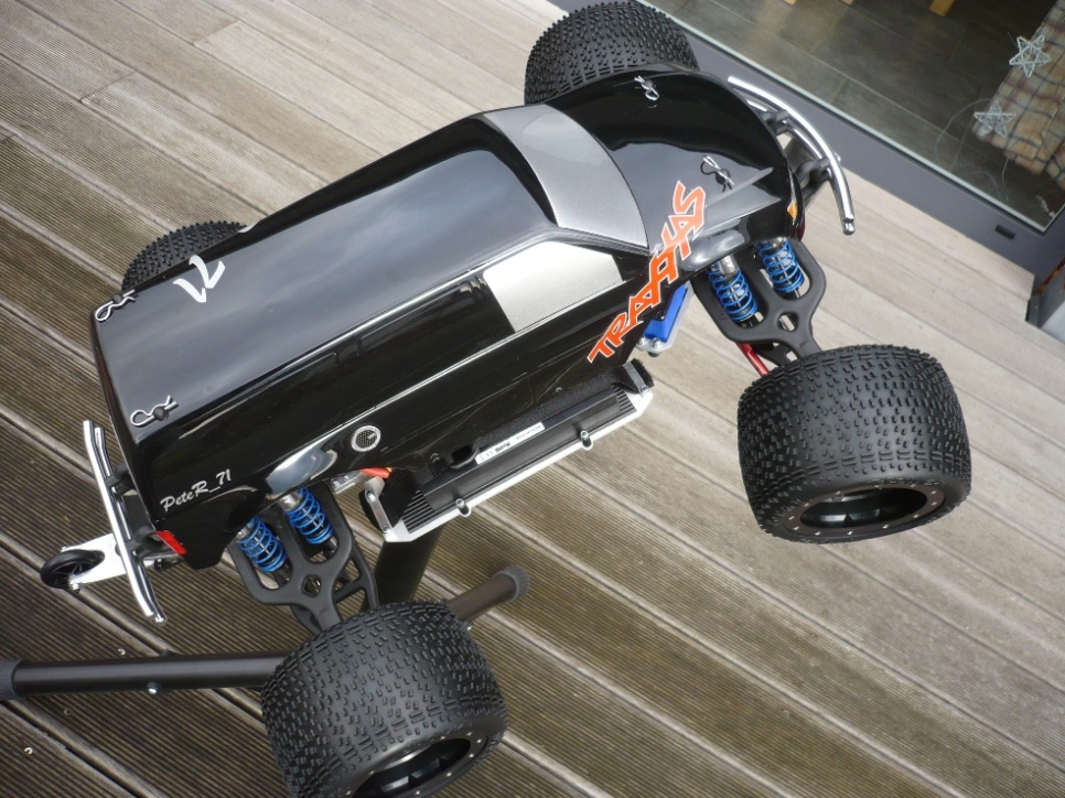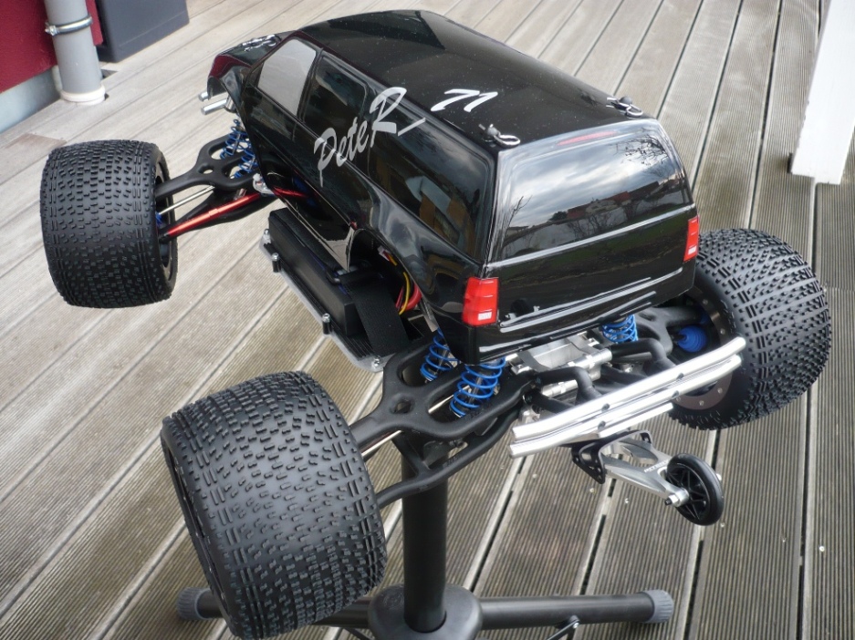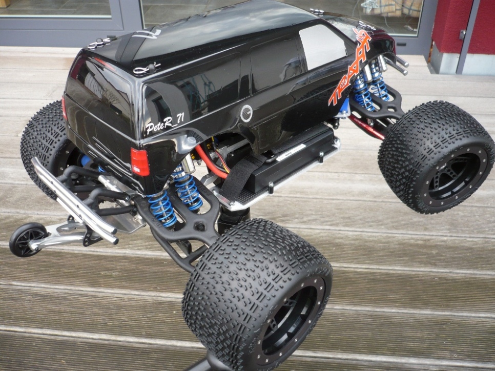 1 Satz E-Maxx Reifen (gebraucht mit einigen Flankenrissen aber zum rumheizen noch gut) für 20,- Euro