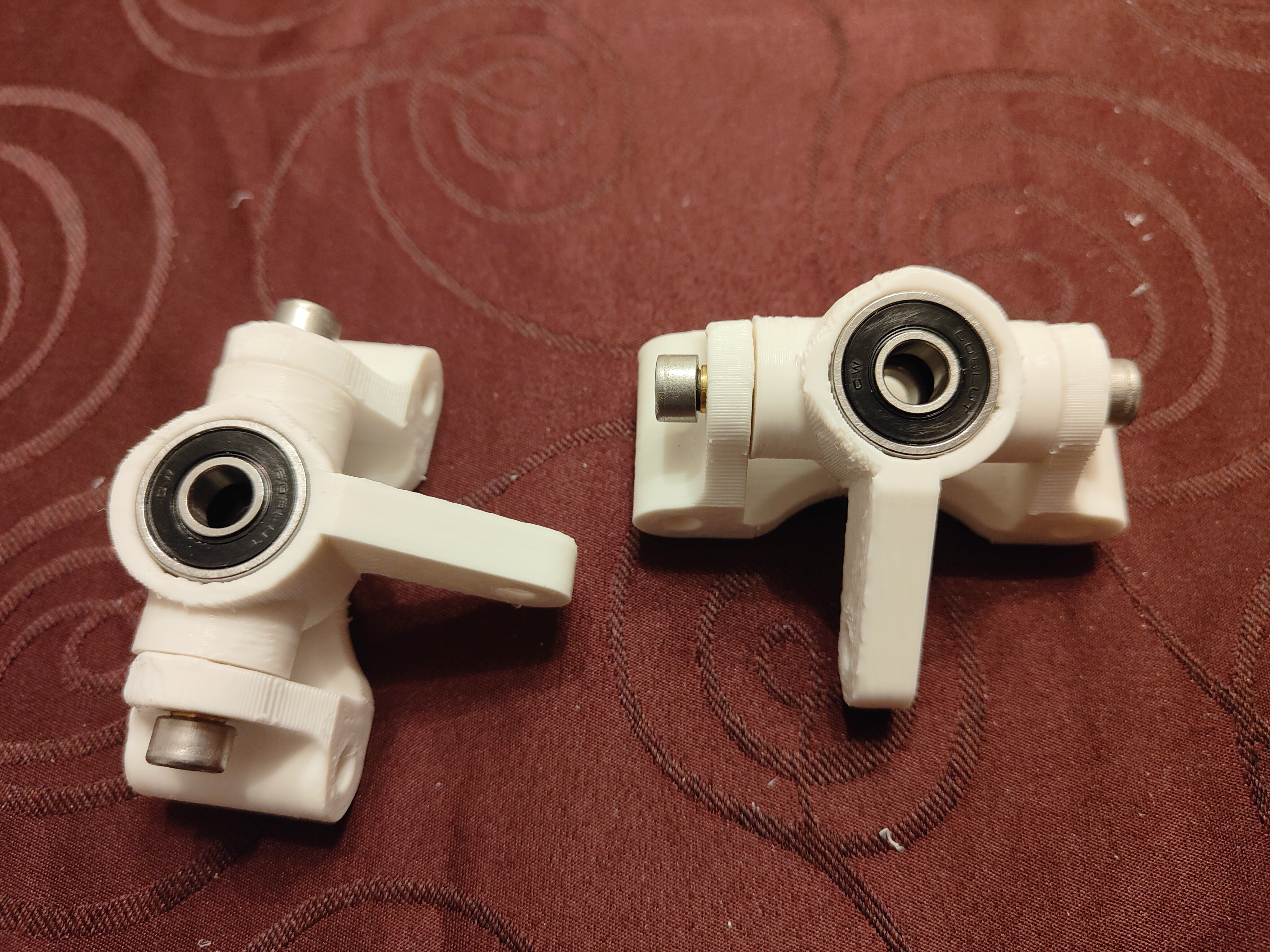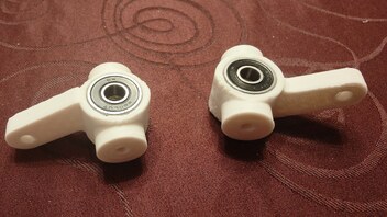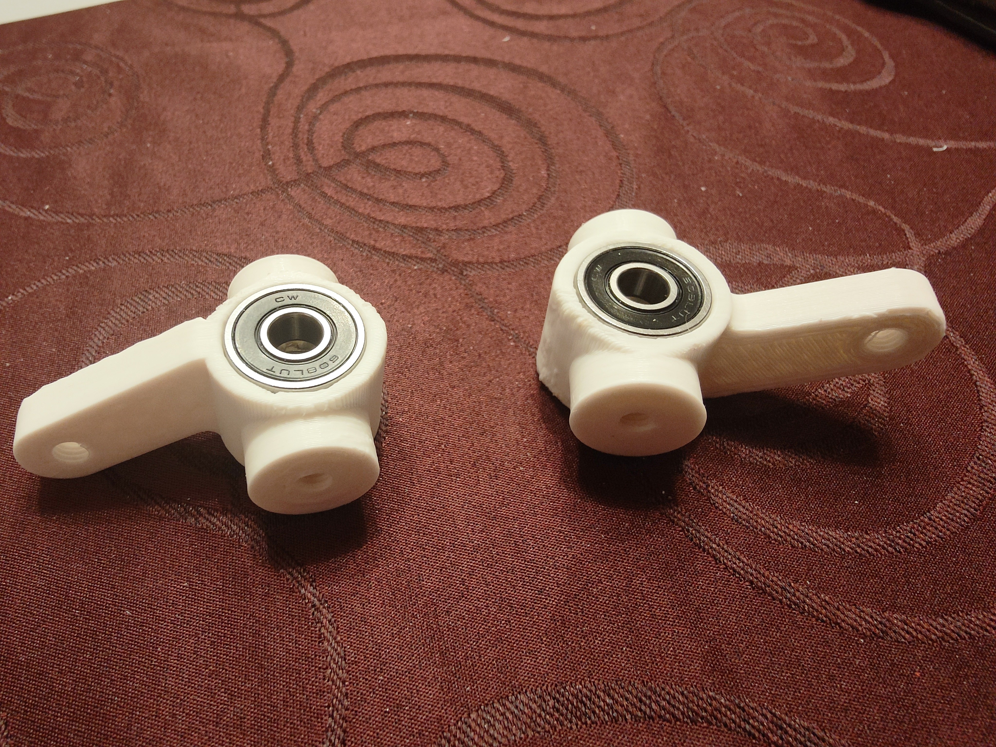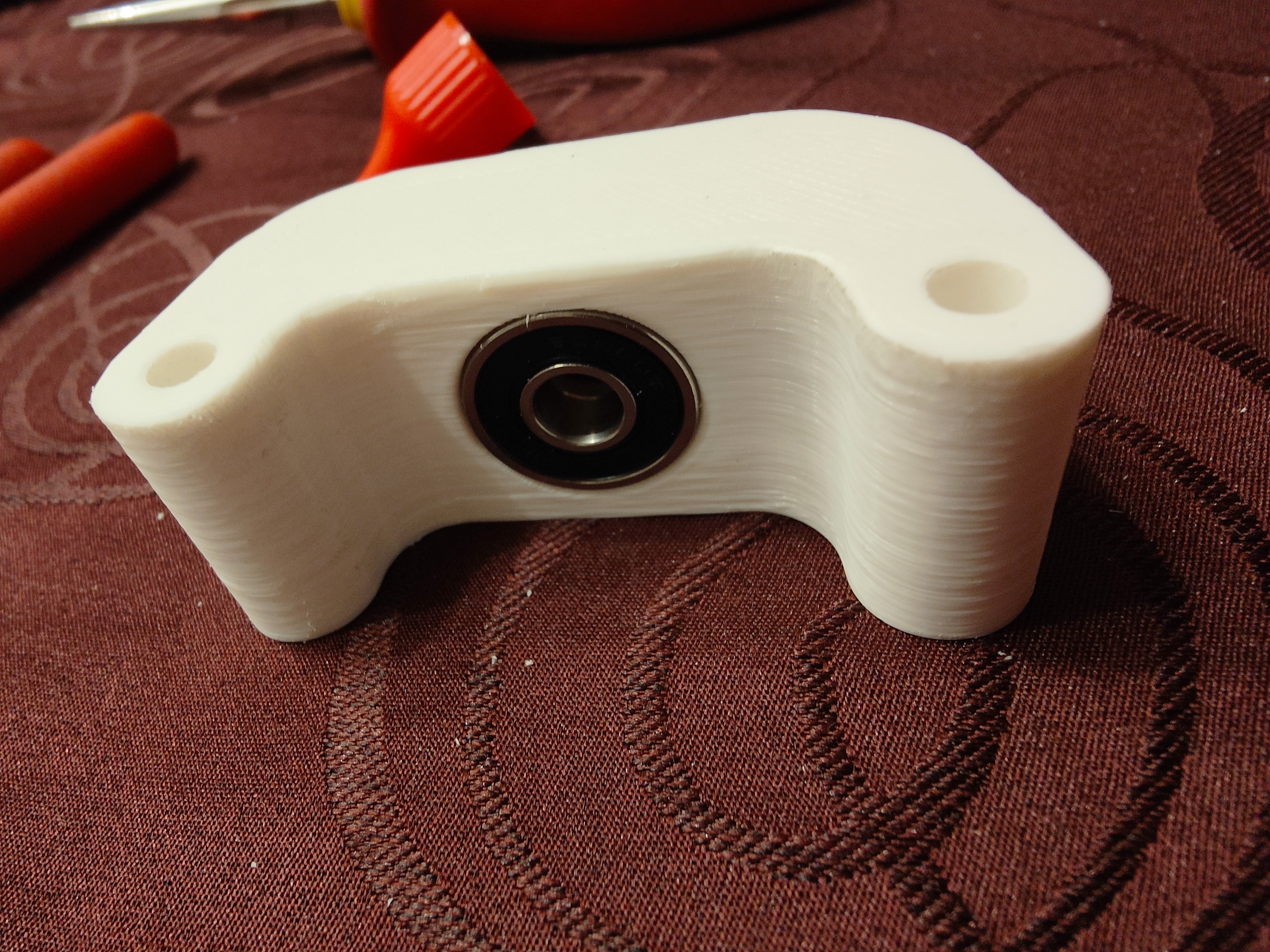Macht soweit einen guten Eindruck. Die Rillenkugellager passen schmatzend in die Lagersitze und schließen zu ca. 90% nach unten hin ab. Später wird der Deckel die Lager fest in die Lagersitze pressen und so eine absolute Spielfreiheit gewährleisten. Man möchte sich gar nicht ausmalen, wie lange ein 3D-gedruckter Lagersitz hält, wenn das Kugellager unter Hochbelastung darin herumklappert wie ein Igel im Kettenkarussell...